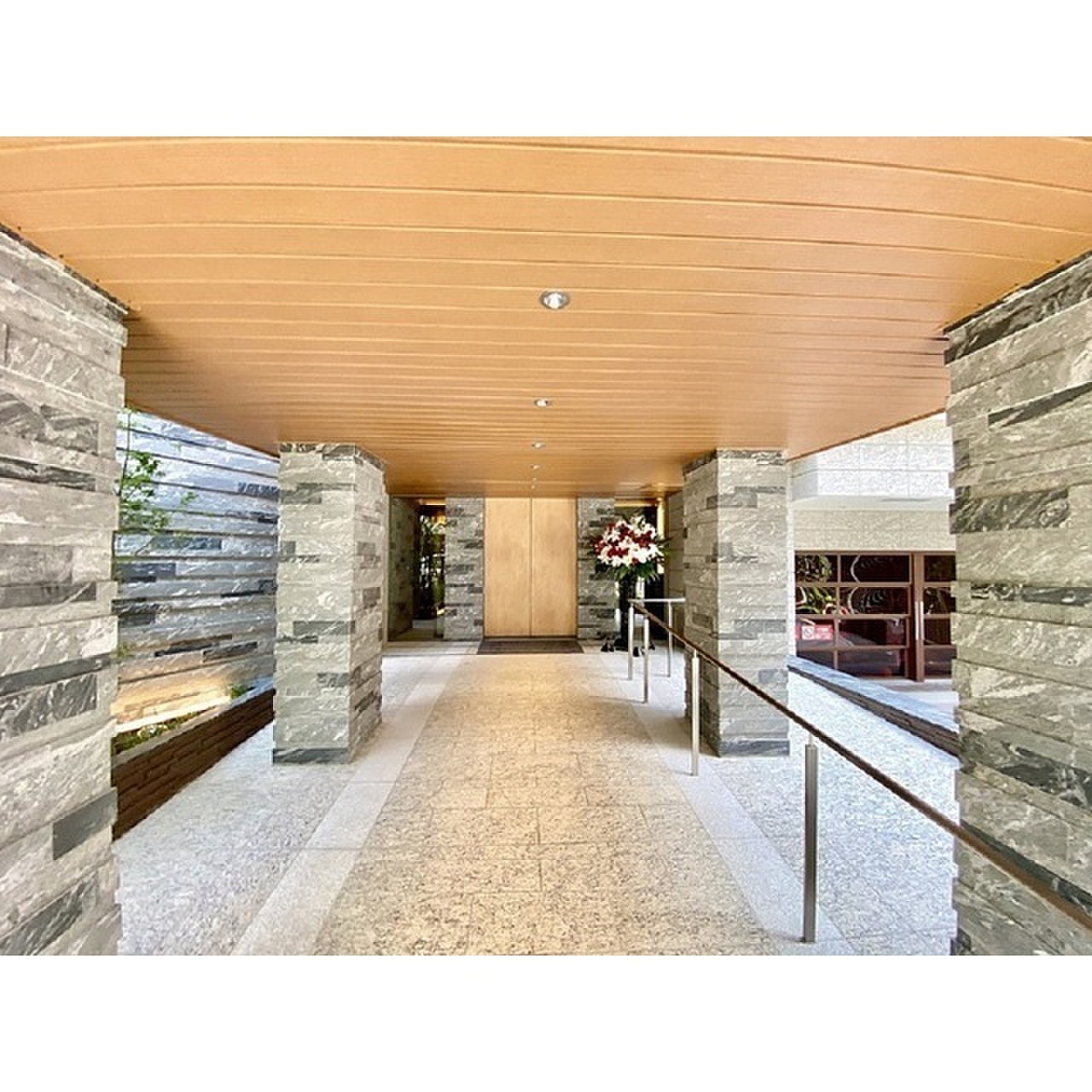 エレベーターホールから玄関までは以下の写真のように、ホテルライクな内廊下の仕様となっています。