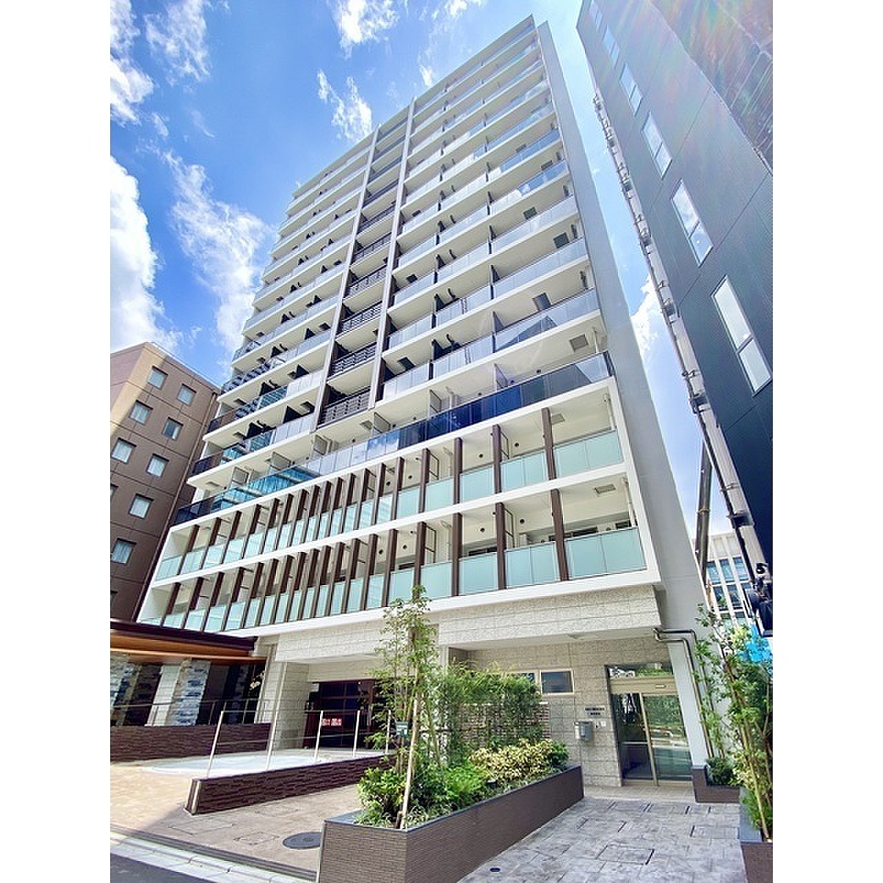 エントランス外観は、シンプルながら上品な仕上がりとなっています。