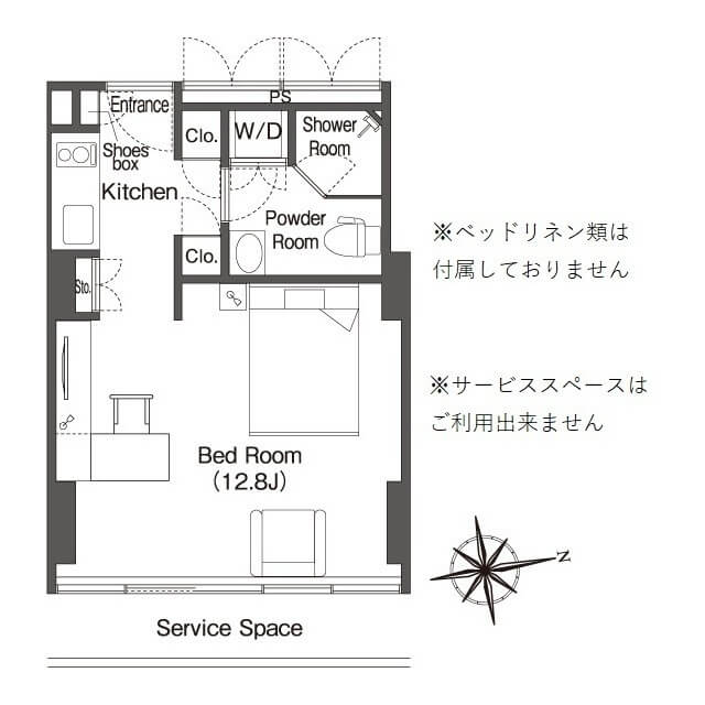 家具家電付きの室内は以下のイメージです。(過去に募集された部屋なので、実際の内容とは異なる可能性があります。)